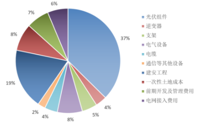 近几年光伏发电技术的成本快速下降,我国很多地区的光伏发电(大型光伏电站)的度电成本已经接近或低于当地燃煤标杆电价。本文梳理了光伏电站的成本构成,以2019年的数据为基础,测算了2019年我国光伏电站的度电成本。通过与各省燃煤标杆电价的对比,分析了我国光伏发电“平价”的现状。最后,提出了个人对新能源发电“系统成本”的思考。 光伏发电度电成本测算与分析 执笔人:陈宁 国网能源院新能源与统计研究所 1. 成本构成 光伏发电(大型光伏电站)的成本可以分为初始投资成本、运行维护成本、其他成本三大类。 (1)初始投资成本 初始投资成本是决定项目总成本的最重要因素,一般包括机组成本、建安工程成本、一次土地成本、电网接入成本等,每种成本的占比如图1所示。2007年至2019年,光伏电站的初始投资成已经下降超过90%,未来将保持缓慢下降的趋势。2019年,我国光伏发电初始投资成本约为4.3元/W。